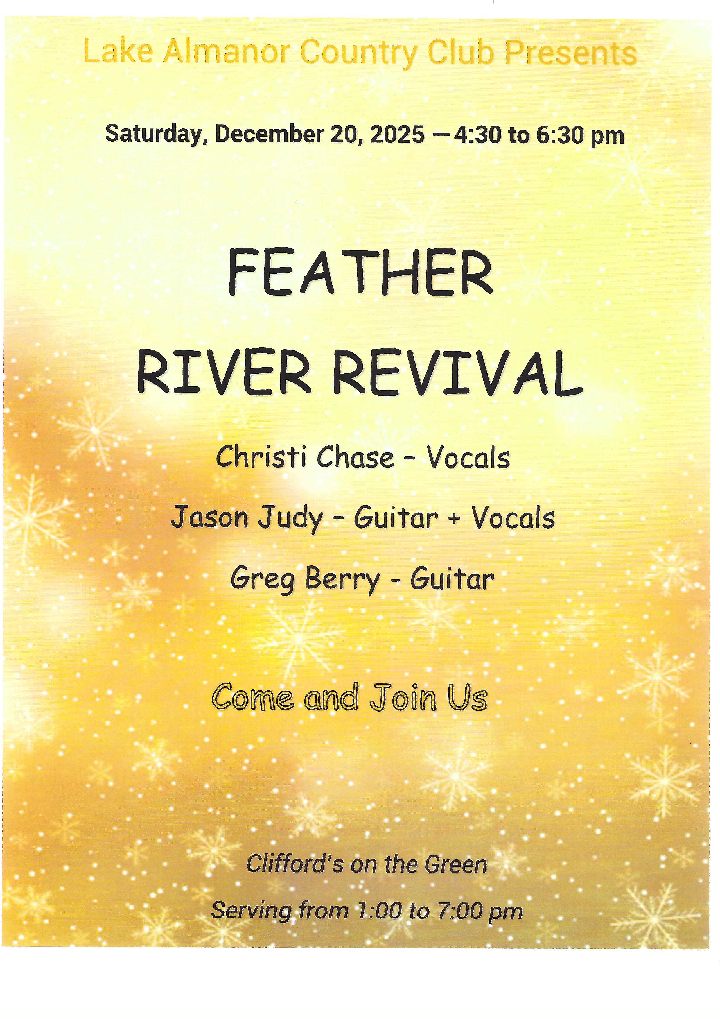 | 12/20/2025 | Live Music This Saturday, 12/20 ![]() Join us at Highlands Ranch Resort for an evening with Amber Mae, performing Saturday, December 20th. Settle in, savor great food, and let the music carry you into the weekend. |