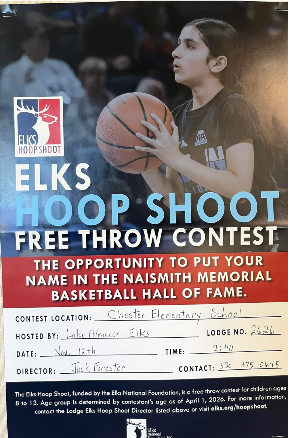 2nd Sunday Breakfast - Doors Open at 9am... breakfast served until noon. November 9th special breakfast is Corn Beef Hash or Sausage, EggsAny Style, Country Potatoes, Biscuit, Fruit Cup & Coffee/Tea. All for just $14.00 which includes 7.25% sales tax. Come and join in on the fun and great food. All proceeds go to keep the good work of the Lake Almanor Elks happening. Thank you for your support.